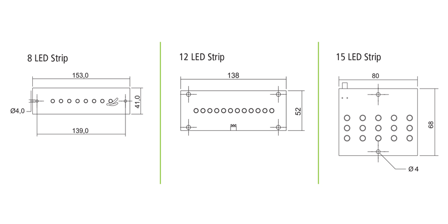 • With the three variants of LED strips—8 LED PCB, 12 LED PCB, and 15 LED PCB—the LED strips have an approximate life of 24 months.
