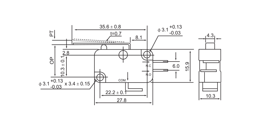 | Withstand voltage | Non-continuous terminals | 1000VAC, 50/60 Hz for 1 minute |