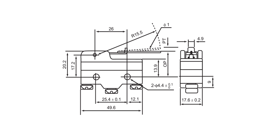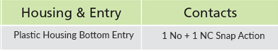 • Contacts: Snap Action 1 NO + 1 NC