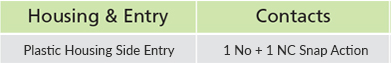 • Mechanical life - 1 Million & Electrical life - 0.5 Million