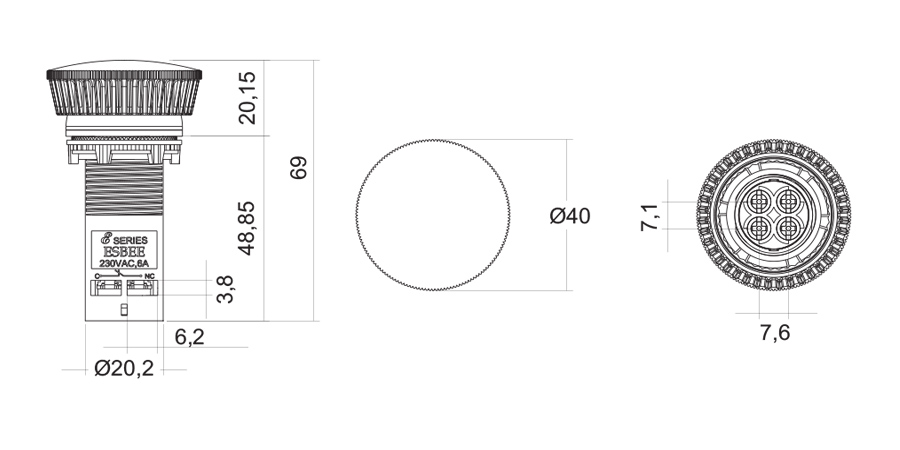• Electrical operation 0.5 million at rated voltage, mechanical life of 1 million operations