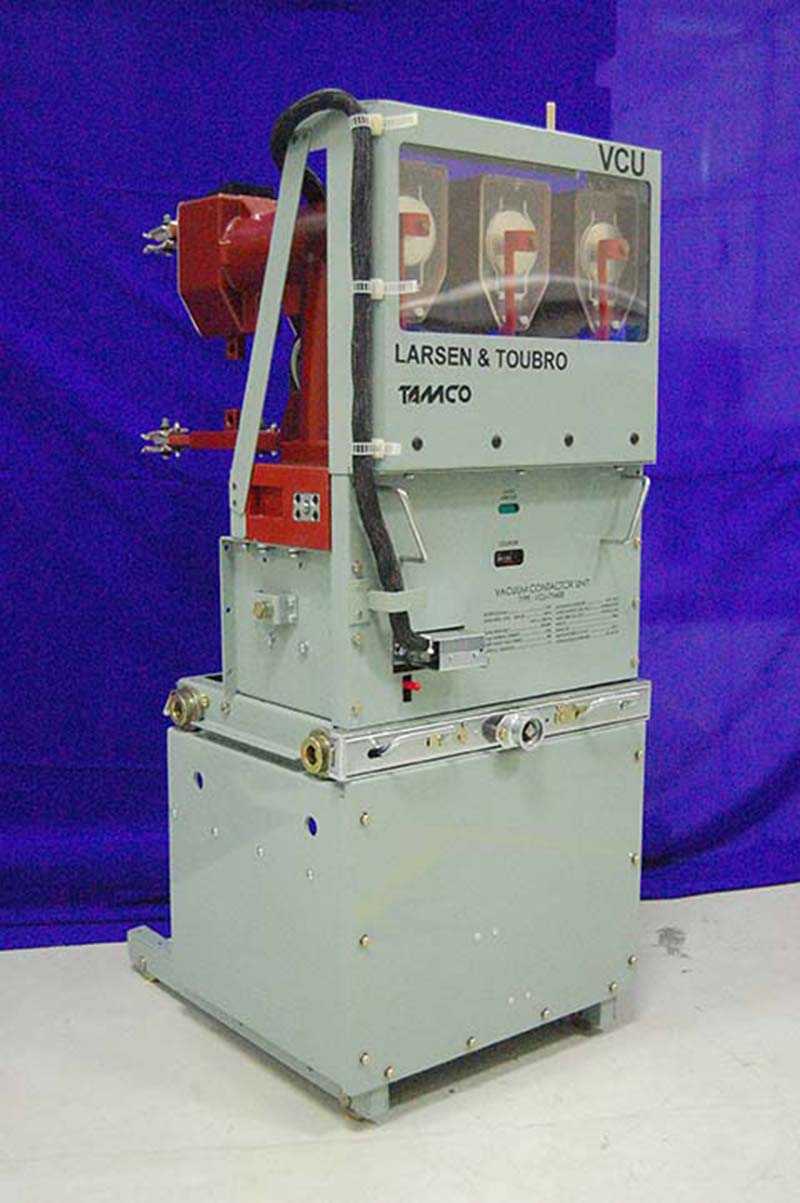 Vacuum Contactor Units from L&T Electrical & Automation (E&A) are three-pole contactors with electromagnetic operating mechanism for medium voltage switching applications. Applications such as neutral grounding of Generators, operations of soft starters, Reactor Capacitor switching, motor switching duties need numerous switching operations. Effective and efficient switching in such areas with high operating voltage is achieved with Vacuum Contactor Units.